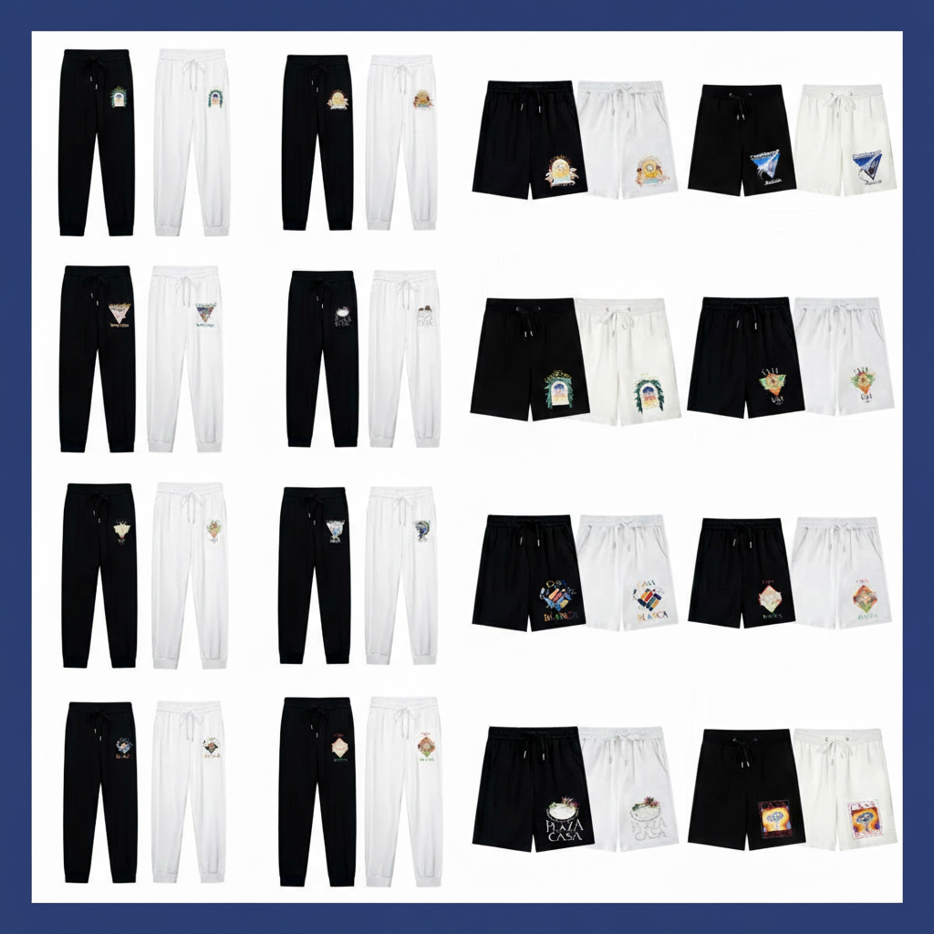 Casablanca Pants – Stylish black and white joggers and shorts with unique graphic prints, perfect for casual wear, street fashion, and comfortable everyday style.