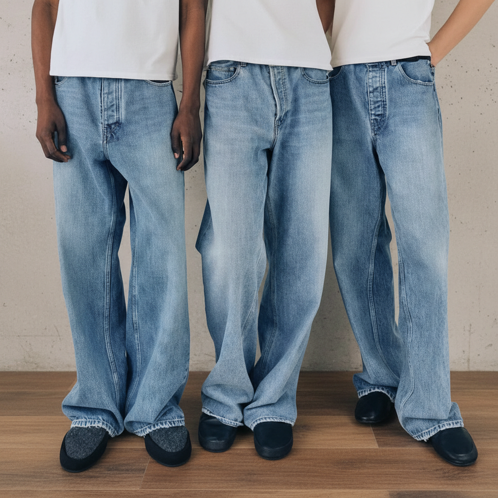 PantsVujade Wide Leg Loose Fit Light Wash Jeans for Men, Stylish Streetwear Denim, Comfortable Casual Trousers Perfect for Everyday Wear