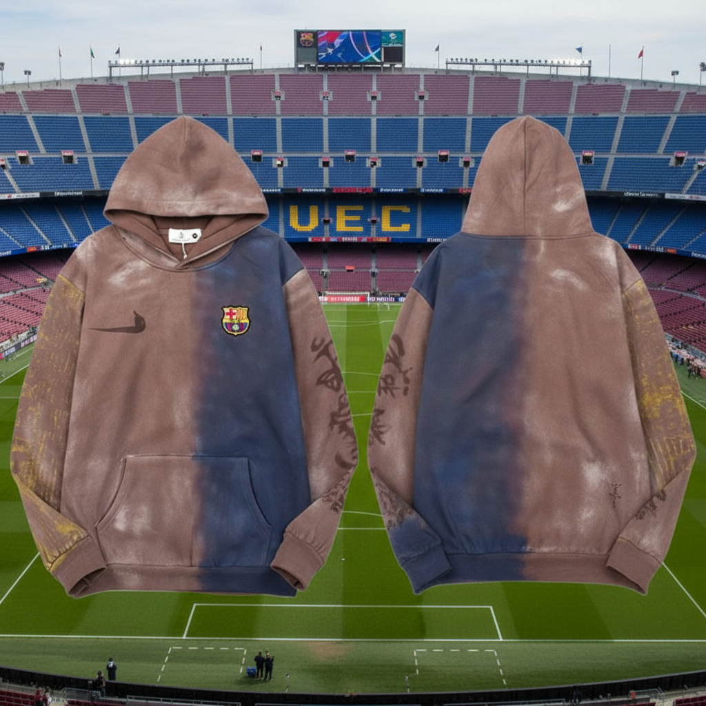 Prada Hoodies Men’s Tie-Dye Pullover with Barcelona Logo, Casual Streetwear Long Sleeve Sweatshirt, Soft Warm Winter Fashion Top