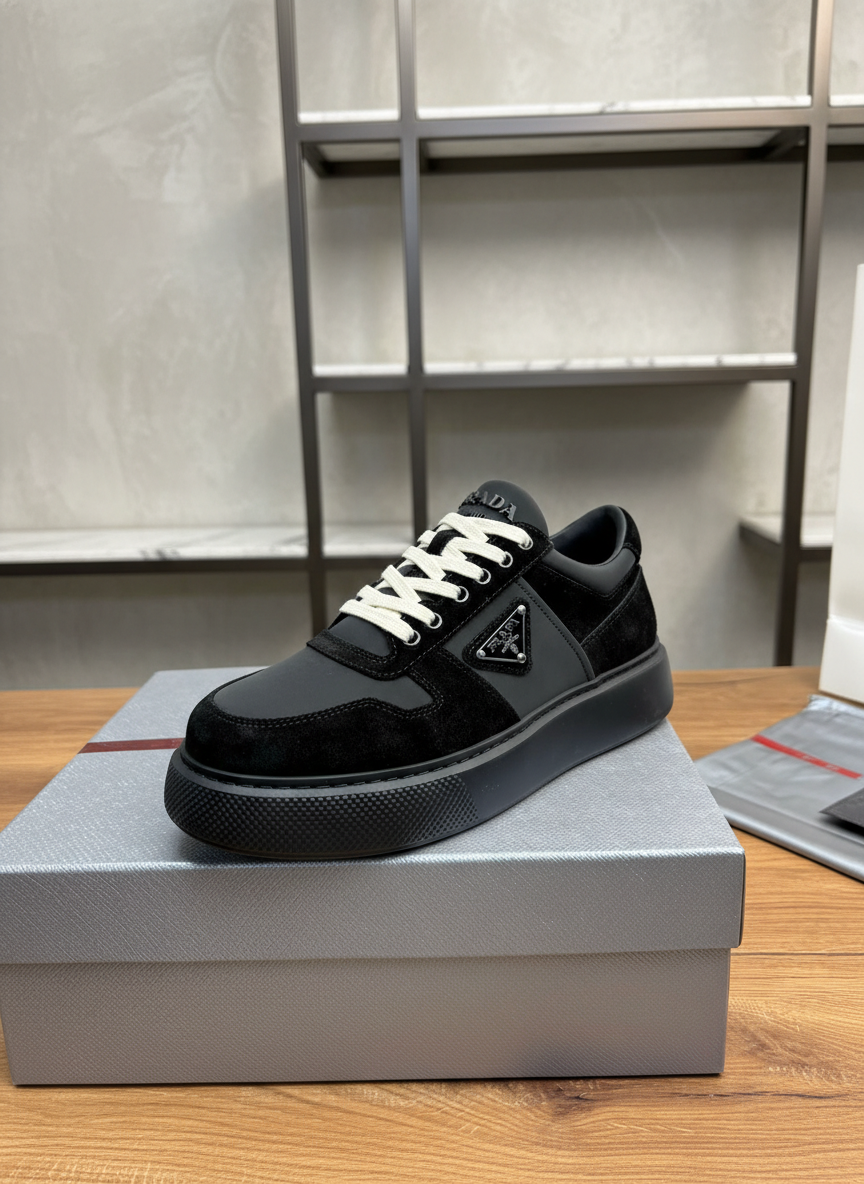 Prada Men’s Black Suede Leather Sneakers, Stylish Low-Top Casual Shoes with Logo Detail and Comfortable Rubber Sole for Everyday Wear