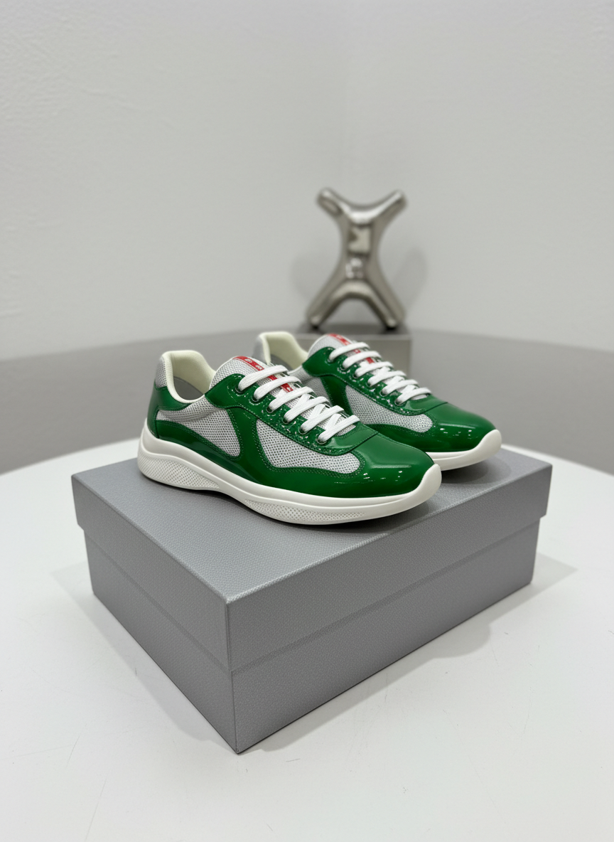 Prada Green Mesh Leather Sneakers for Men