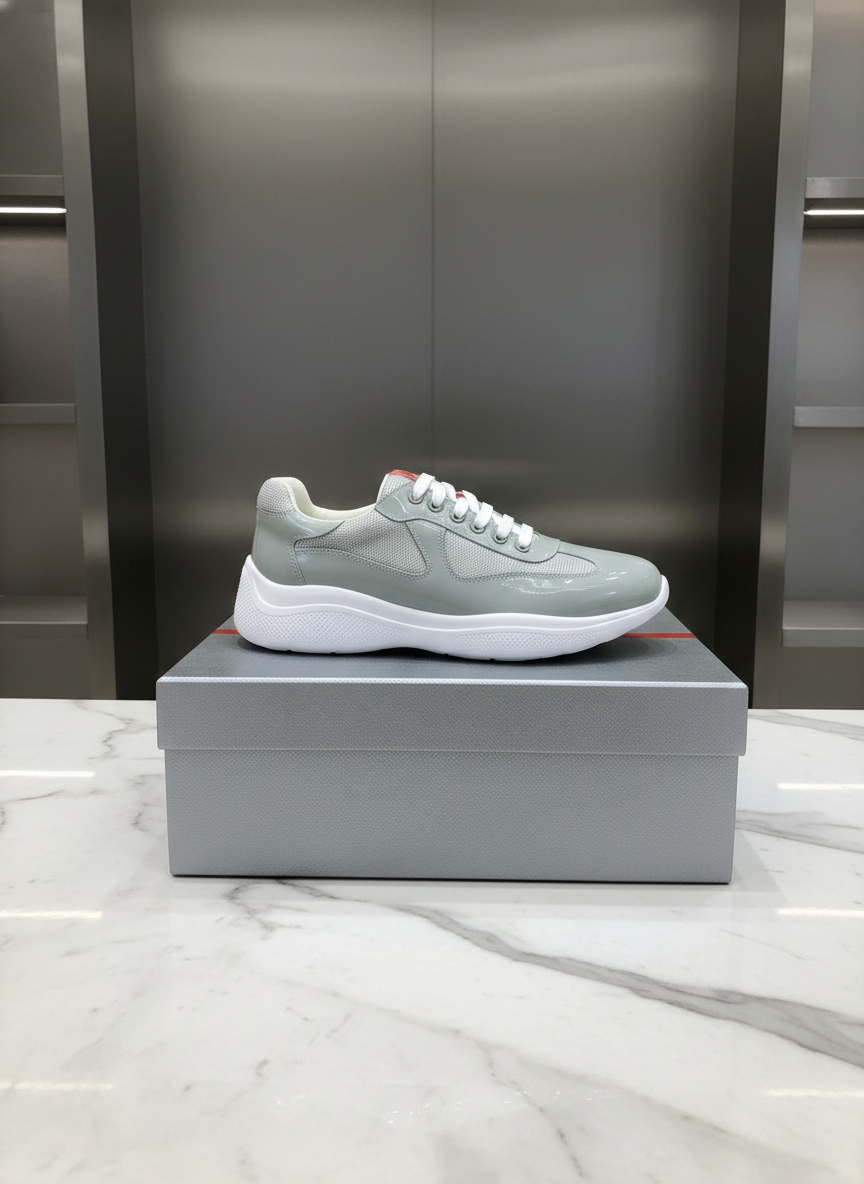Prada Grey Mesh Leather Sneakers for Men