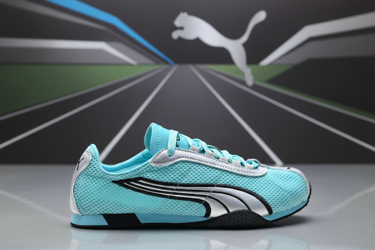 Puma Light Blue Mesh Sneakers with Silver Accents, Breathable Comfort, Stylish Design for Casual Wear and Sports