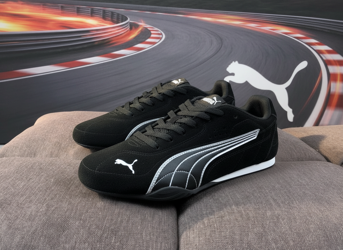 PUMA Black Suede Sneakers with White Logo, Lightweight Casual Sport Shoes for Men and Women, Comfortable Fit for Walking, Running, and Everyday Wear