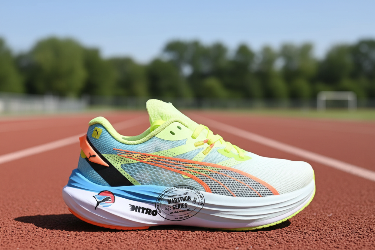 Puma Nitro Marathon Series running shoes with breathable mesh upper, lightweight design, and responsive cushioning for maximum speed and comfort.