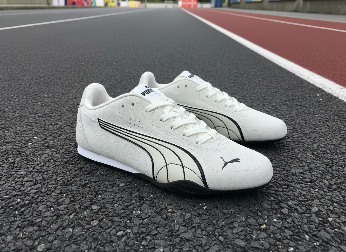 Puma casual sneakers in white with black logo, lightweight and comfortable design, perfect for daily wear, walking, and sports style enthusiasts.