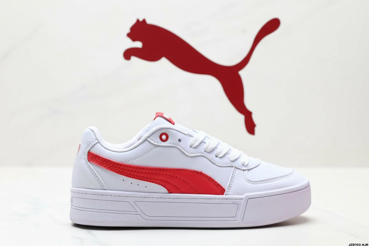 Puma White Sneakers with Red Stripe, casual low-top design, durable sole, comfortable fit, perfect for everyday wear and sports style.