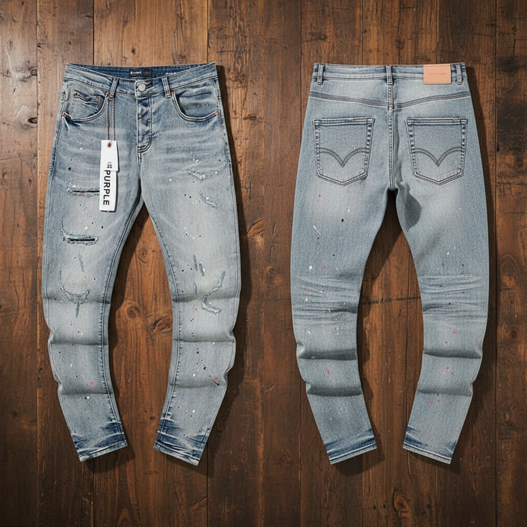Purple 25SS Washed Denim Jeans Light Blue Ripped Patch Splatter