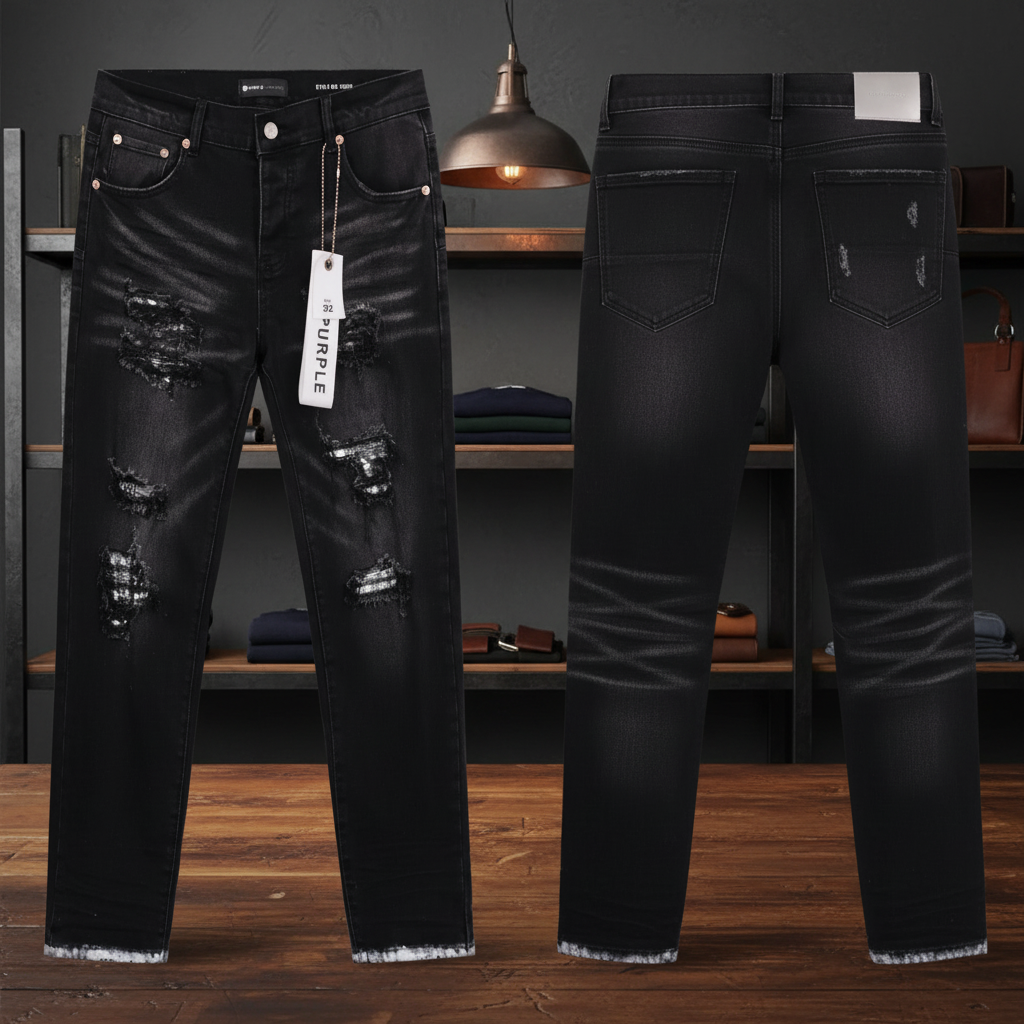 / Purple Black Washed Ripped Denim Pants, Unisex Vintage Jeans