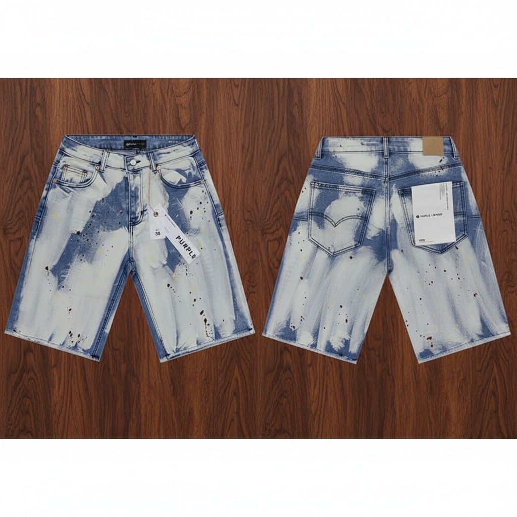 Purple Distressed Ink Wash Denim Shorts | Unisex Vintage High-Street