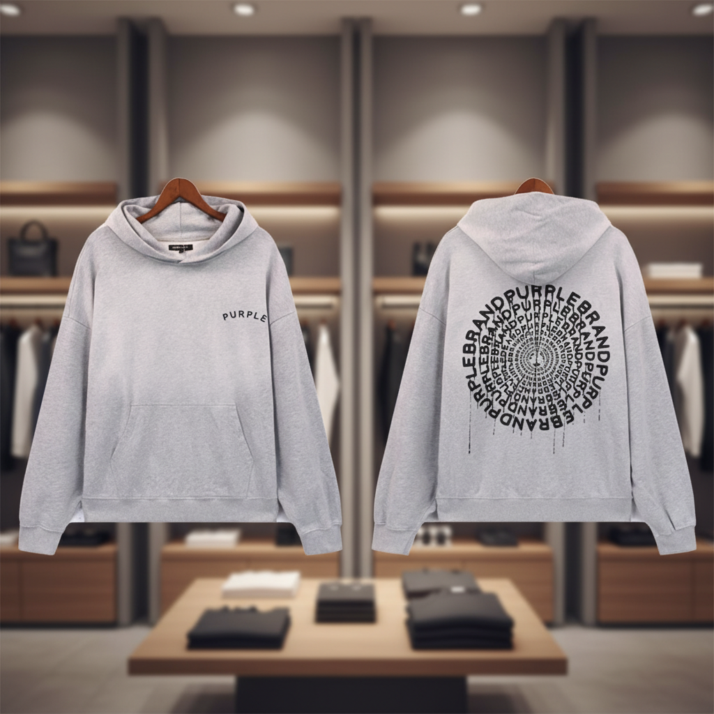 / Purple Gray Hoodie Unisex Washed Cotton Casual Streetwear Pullover
