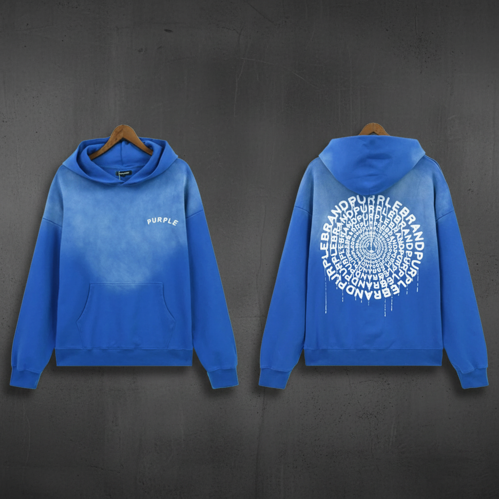 Purple Hoodie: Blue Gradient Cotton Unisex Washed High-Street Hooded Sweatshirt