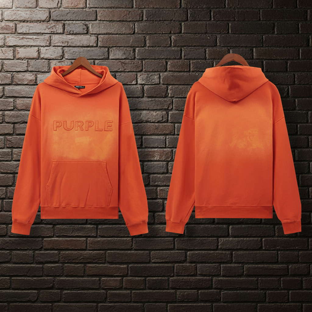 / Purple Orange Washed Hoodie: Vintage Street Style Unisex Cotton Sweatshirt