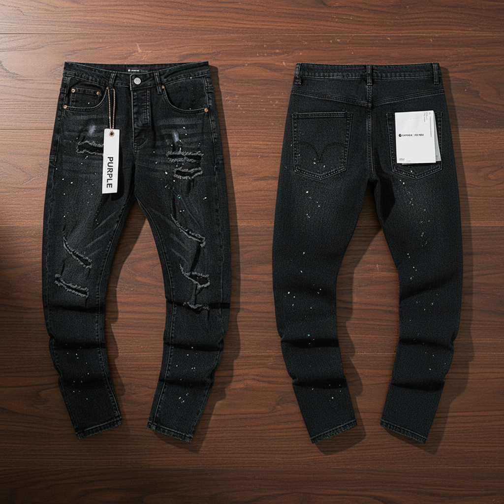 / Purple Purple 2025SS Distressed Washed Black Denim Pants Ripped Patchwork Splatter
