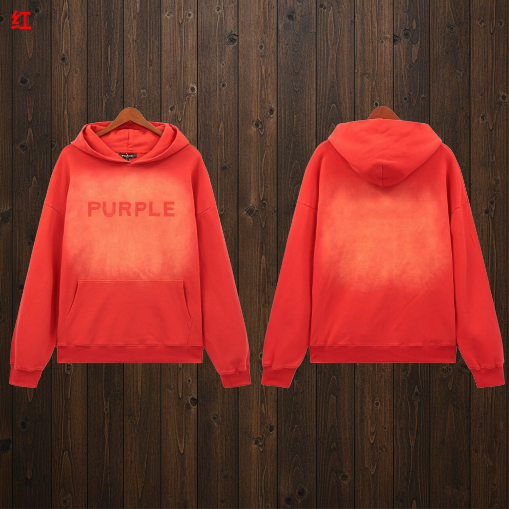 / Purple Red Washed Hoodie Unisex Embroidered Streetwear Cotton Casual