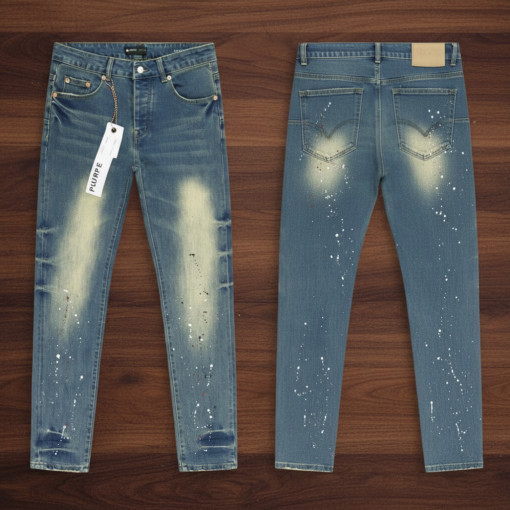 / Purple Retro Washed Denim Pants, Distressed Patch Unisex