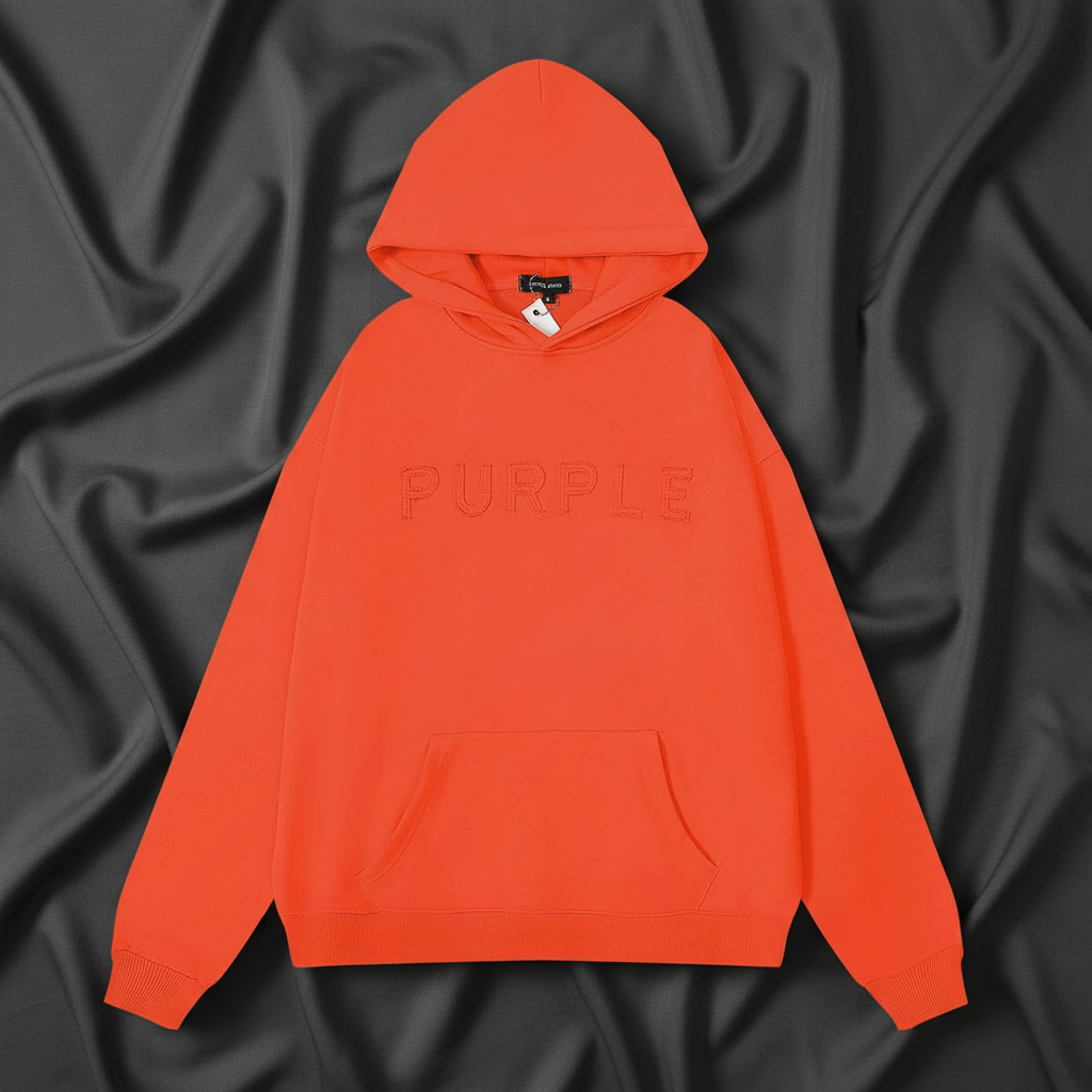 / Purple Unisex Embroidered Hoodie – Orange Cotton Streetwear Sweatshirt