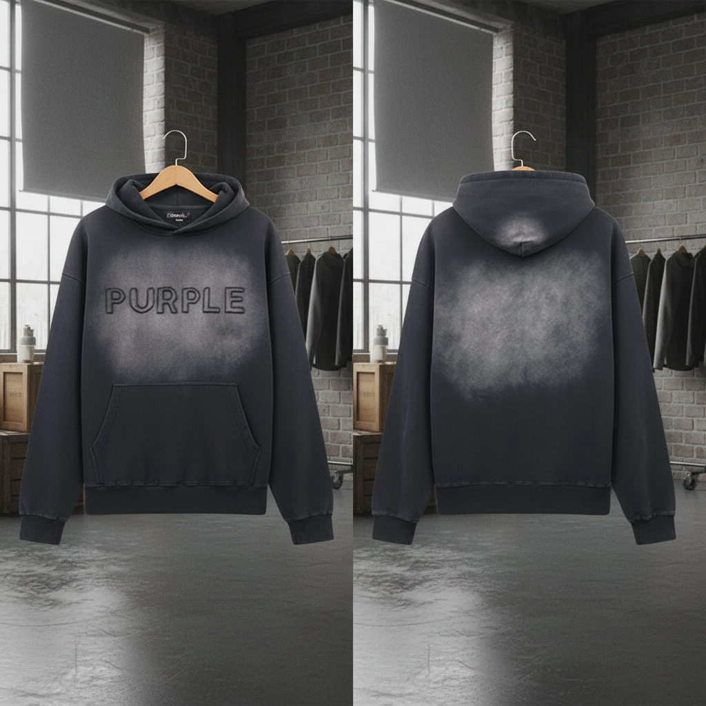/ Purple Unisex Hoodie Set Vintage Wash Embroidered Logo Streetwear