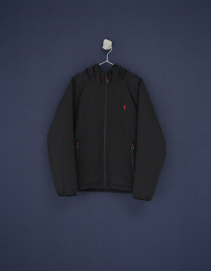 Ralph Lauren Men’s Black Hooded Jacket with Front Zip and Pockets, Lightweight and Stylish Outerwear for Casual or Outdoor Wear