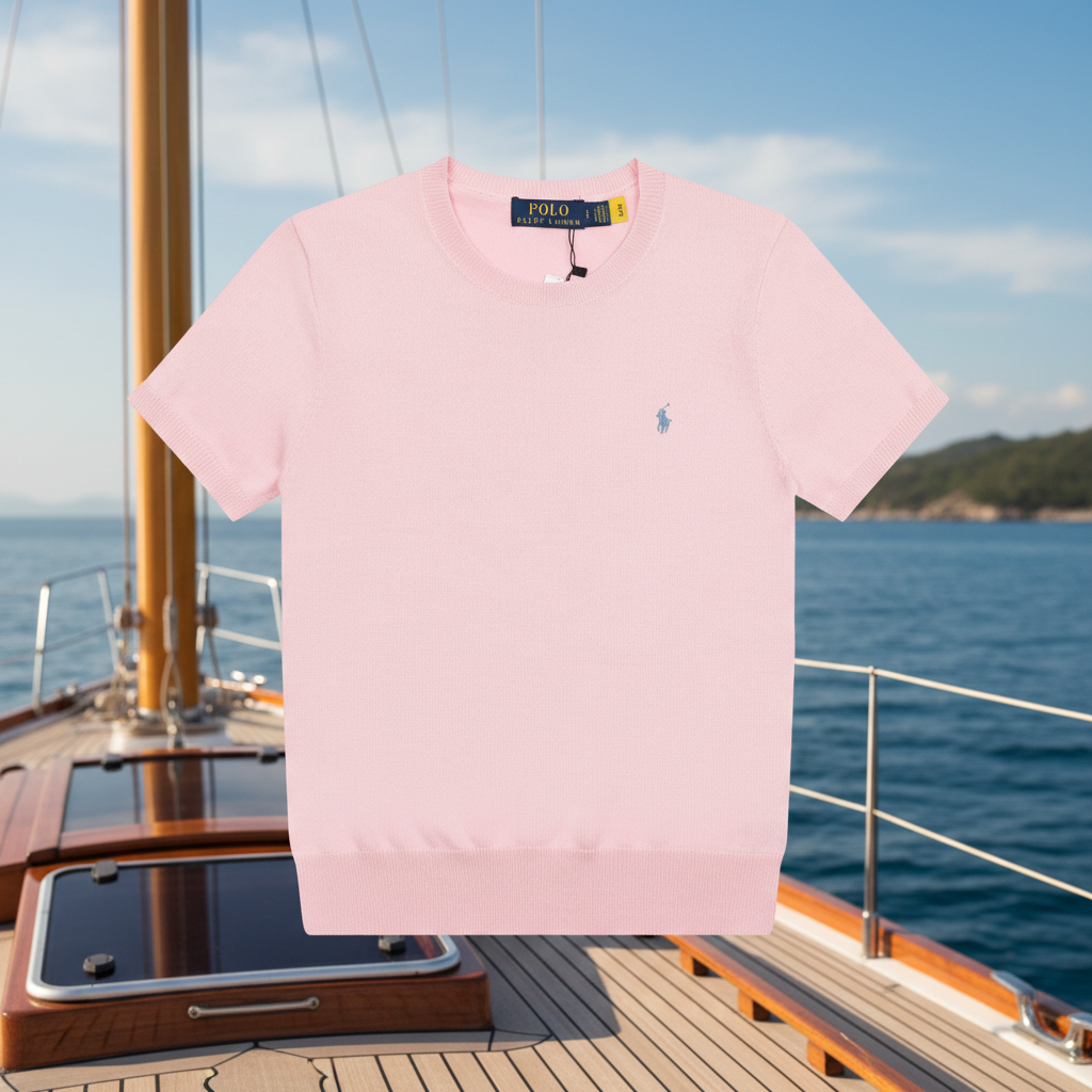Ralph Lauren Polo pink short sleeve T-shirt, classic crew neck, soft cotton fabric, iconic pony logo, casual style for everyday comfort and fashion.