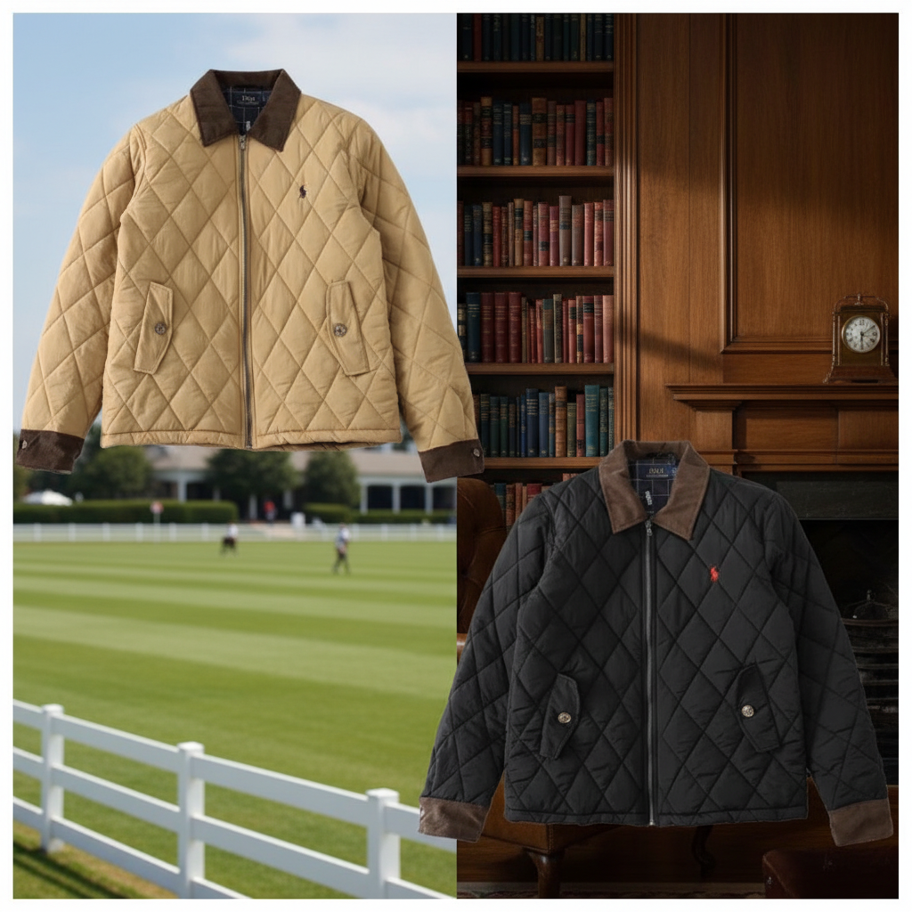 Ralph Lauren Quilted Jacket for Men, Lightweight Warm Outerwear with Corduroy Collar and Cuffs, Stylish Diamond Pattern, Ideal for Casual or Outdoor Wear in Fall and Winter Seasons