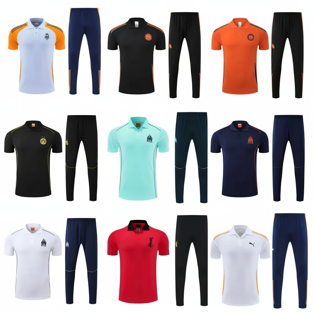 Real Madrid men’s football training T-shirt and pants set, breathable sportswear for soccer fans, comfortable fit for workouts and casual wear.