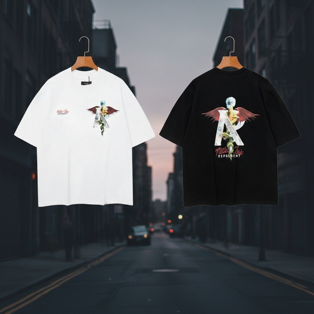 Represent Angel Graphic T-Shirt, stylish streetwear top with unique winged design, available in black or white, perfect for casual fashion and everyday wear.