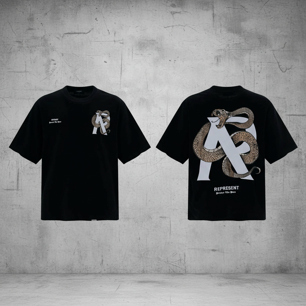 REPRESENT Black Snake Graphic T-Shirt, stylish streetwear with bold serpent design, premium cotton, perfect for casual and urban fashion lovers.