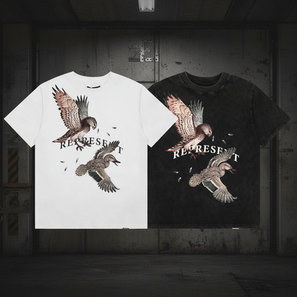 REPRESENT Eagle and Duck Graphic T-Shirt, Vintage Style, Soft Cotton Tee for Men and Women, Streetwear Fashion in Black or White