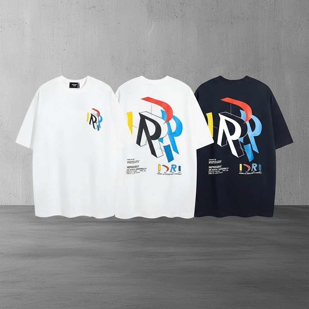 T-ShirtsRepresent Graphic Print Cotton Tee, Stylish Streetwear Shirt with Colorful Geometric Design, Casual Loose Fit for Men and Women, Perfect for Everyday Wear
