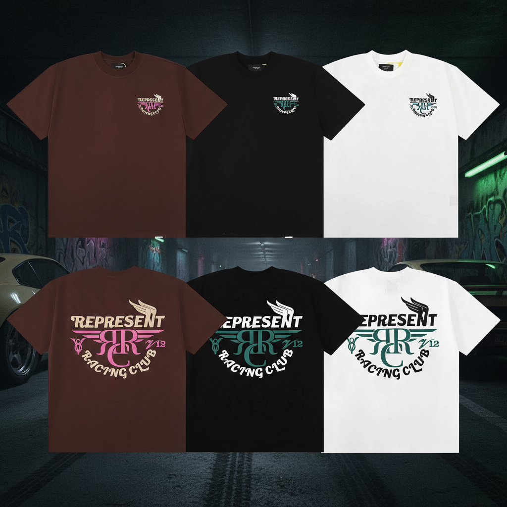 Represent Racing Club T-Shirt, stylish streetwear with bold graphic print, premium cotton, casual fit, perfect for daily wear and sports, available in multiple colors.