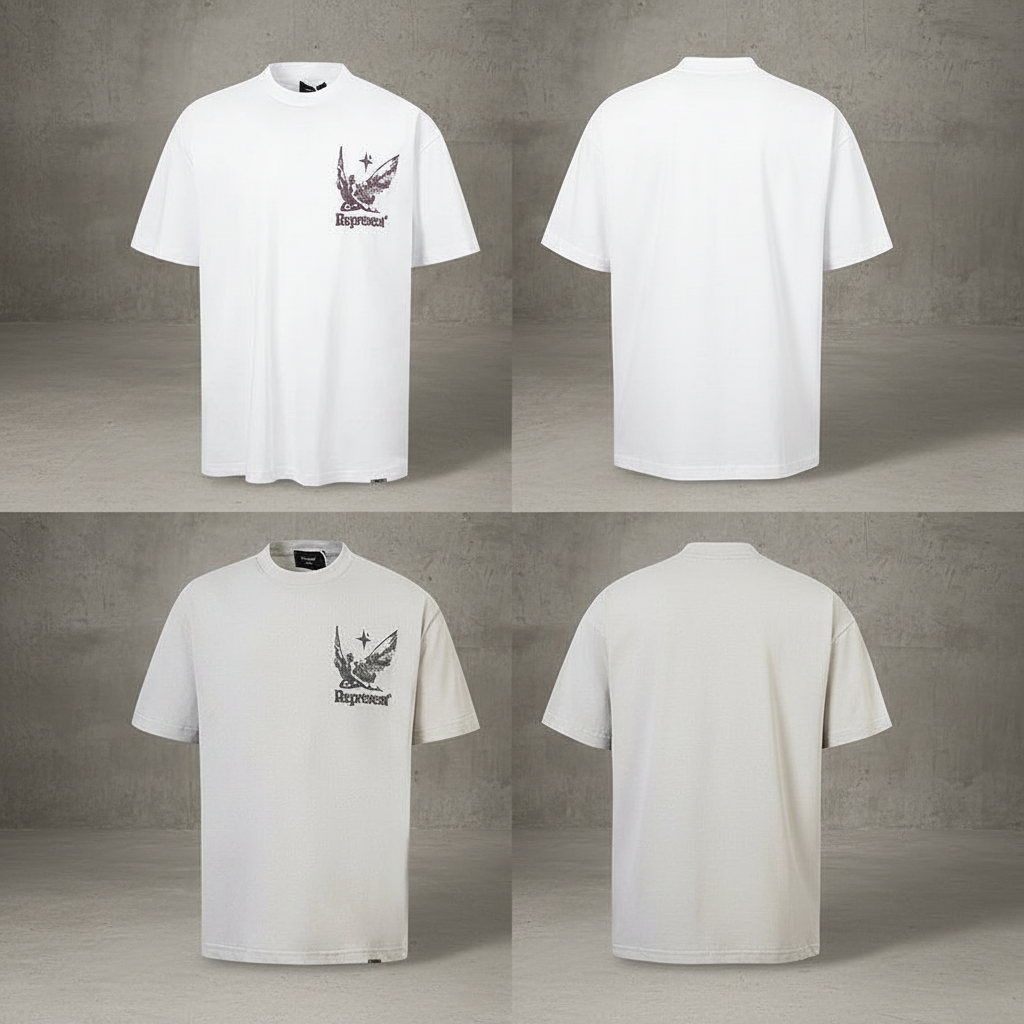 Represent T-Shirt featuring front eagle graphic and “Spirits of Summer” back print, premium cotton, casual streetwear style for summer.