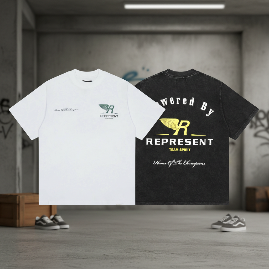 Represent Team Spirit T-Shirt, premium cotton, bold logo design, Home of the Champions print, casual streetwear style for men and women.