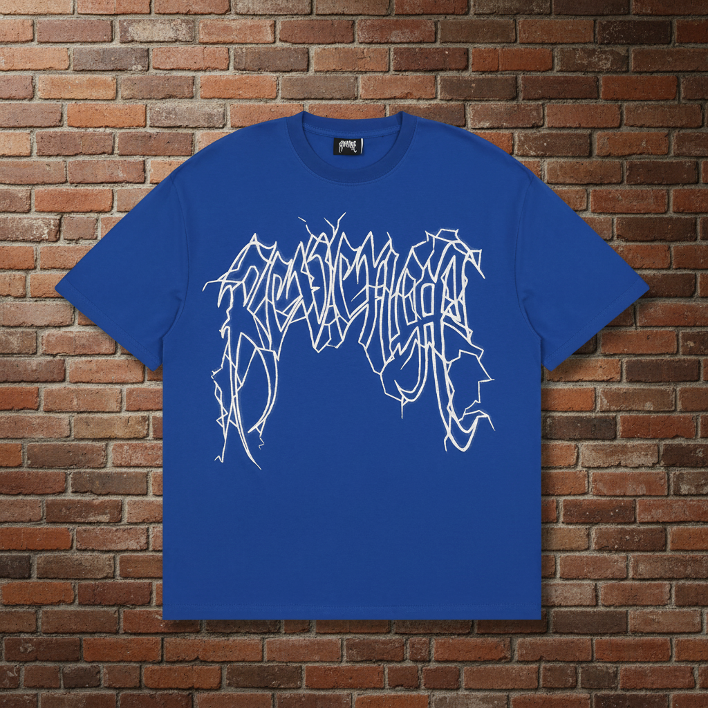 REVENGE 21SS Blue Lightning Logo Print Unisex Cotton T-Shirt