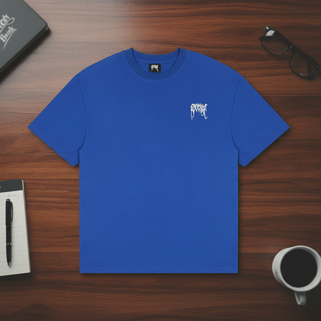 Revenge 22SS Blue Cotton Embroidered T-Shirt, Unisex Streetwear Tee