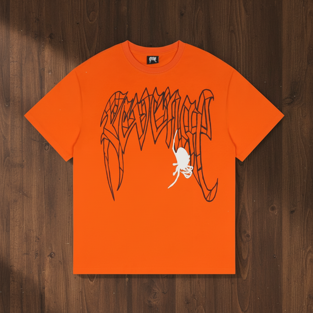 / Revenge 22SS Orange Skull Spider Print T-Shirt