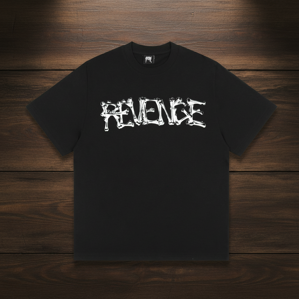 Revenge Black T-Shirt: Cotton Streetwear Tee with Skull Print