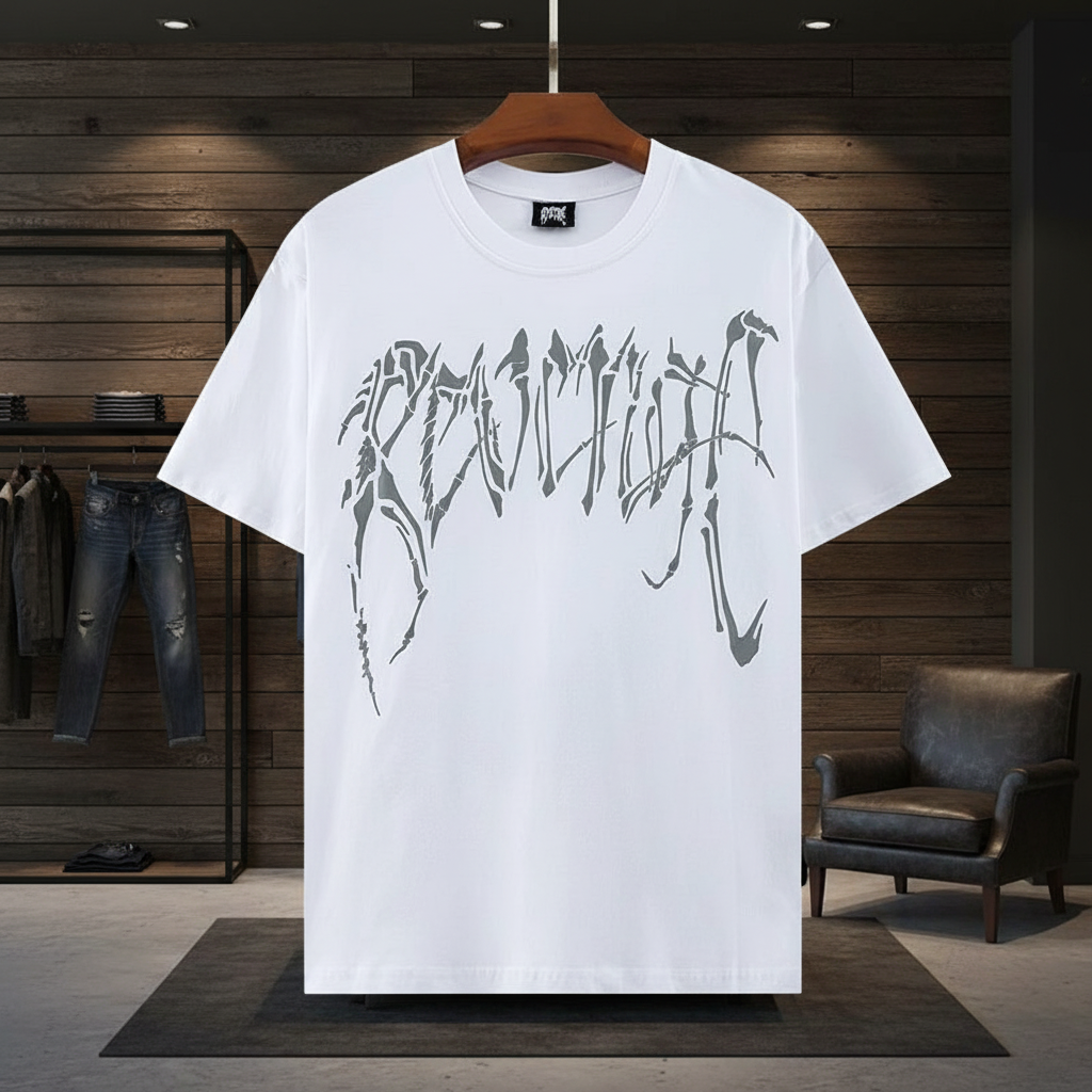 Revenge Glow Dragon Skeleton Print T-Shirt, Unisex Streetwear