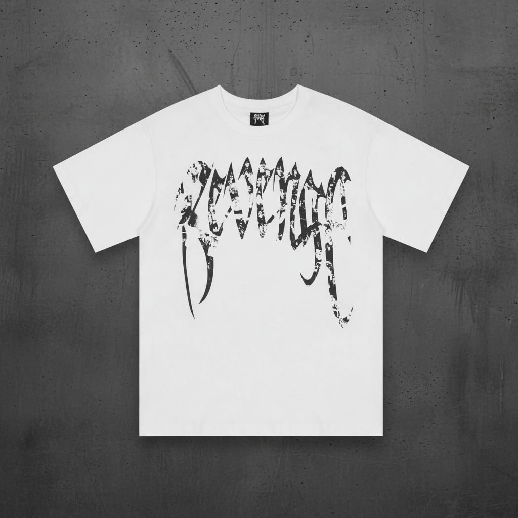 Revenge White Distressed Logo Oversized T-Shirt, Unisex Streetwear