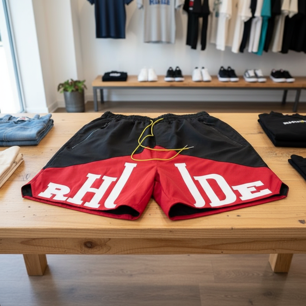 / Rhude Black & Red Quick-Dry Shorts: Unisex Streetwear w/ Drawstring