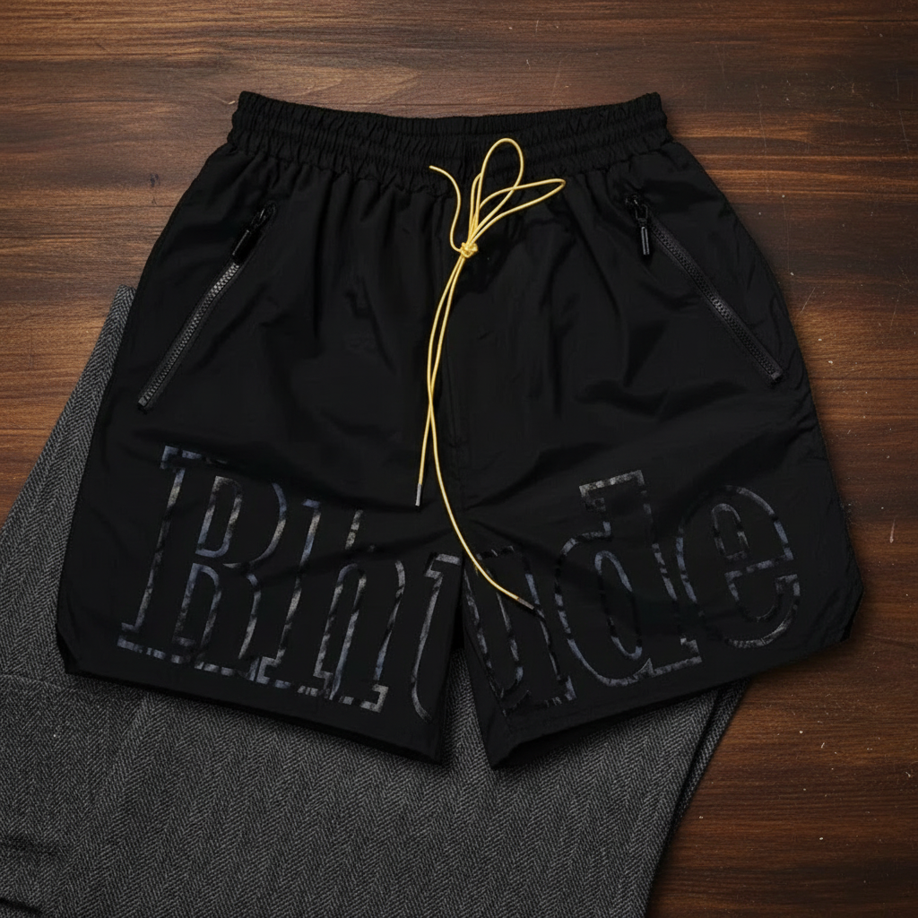 / Rhude Black Shorts: Lightweight, Breathable, Streetwear Style