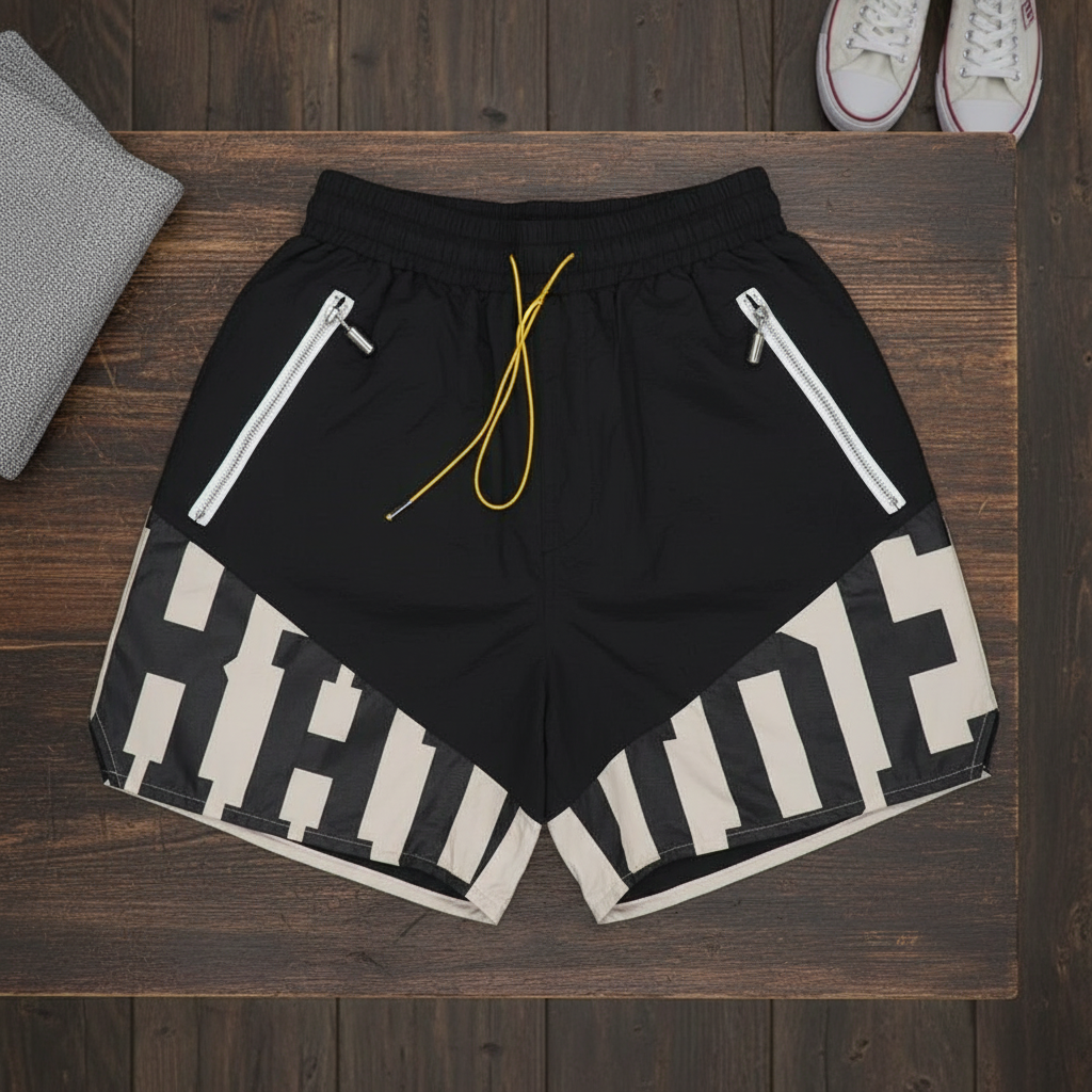 / Rhude Black & White Shorts | Unisex Streetwear w/ Drawstring