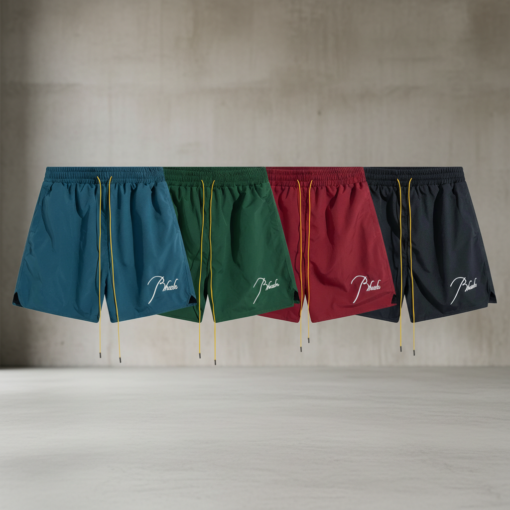 Rhude Men’s Casual Drawstring Shorts, Lightweight Summer Beach Sportswear, Available in Blue, Green, Red, Black, Stylish Streetwear for Comfort and Fashion