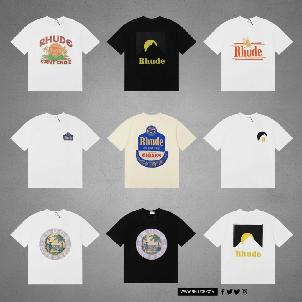 Rhude T-Shirts featuring bold graphics, premium cotton, and unique streetwear style, perfect for casual wear and fashion-forward looks.