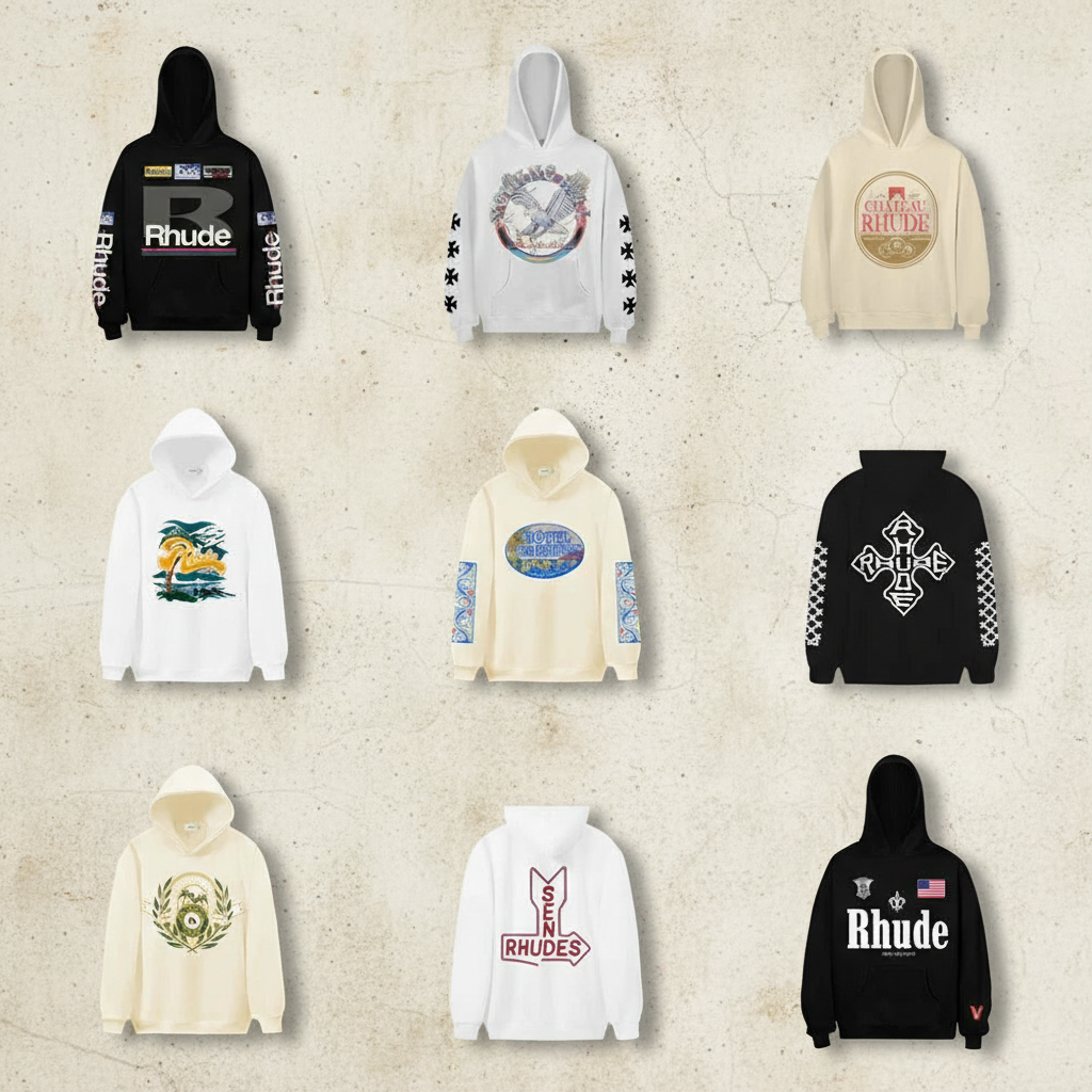 Rhude hoodies featuring unique graphic prints, premium fabric, and streetwear style for casual comfort and standout fashion worldwide.