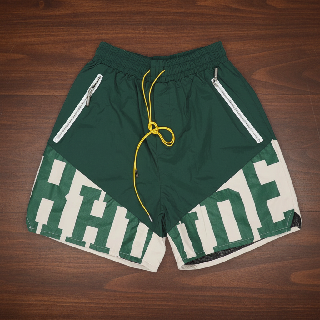Rhude Green Patchwork Shorts Unisex Quick-Dry Streetwear