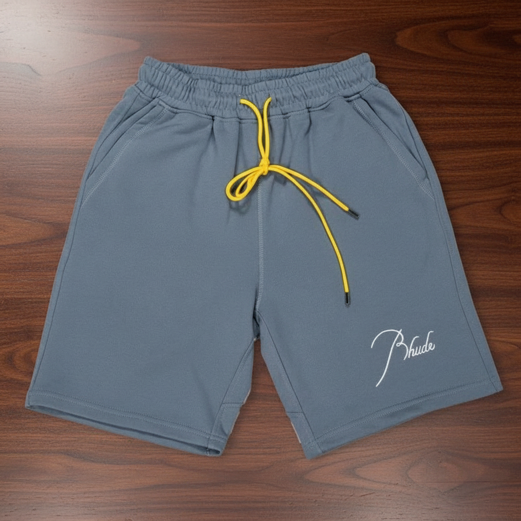 / Rhude Grey Shorts: Unisex Streetwear with Embroidered Logo & Drawstring
