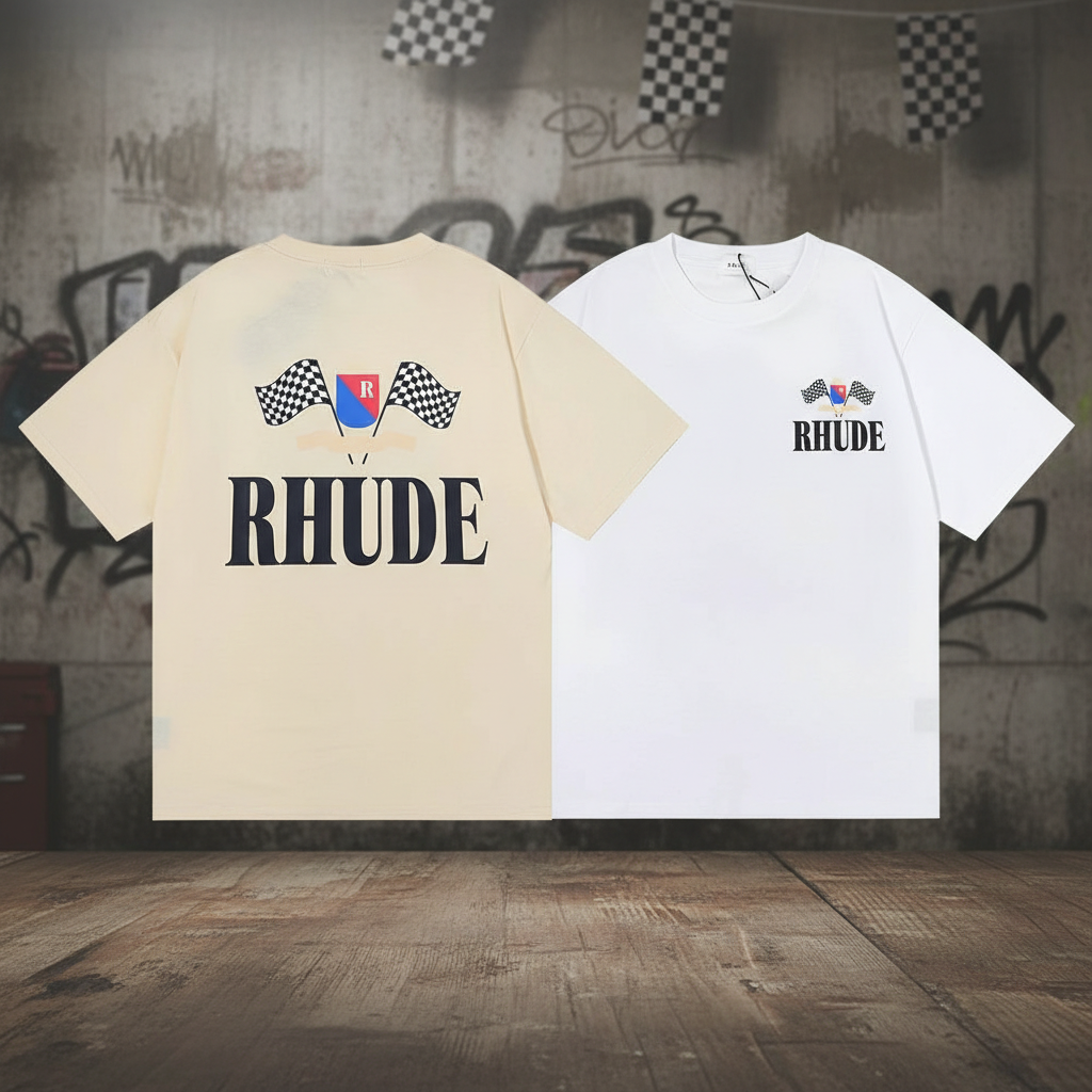 Rhude Racing Flag Logo Cotton T-Shirt Streetwear Tee