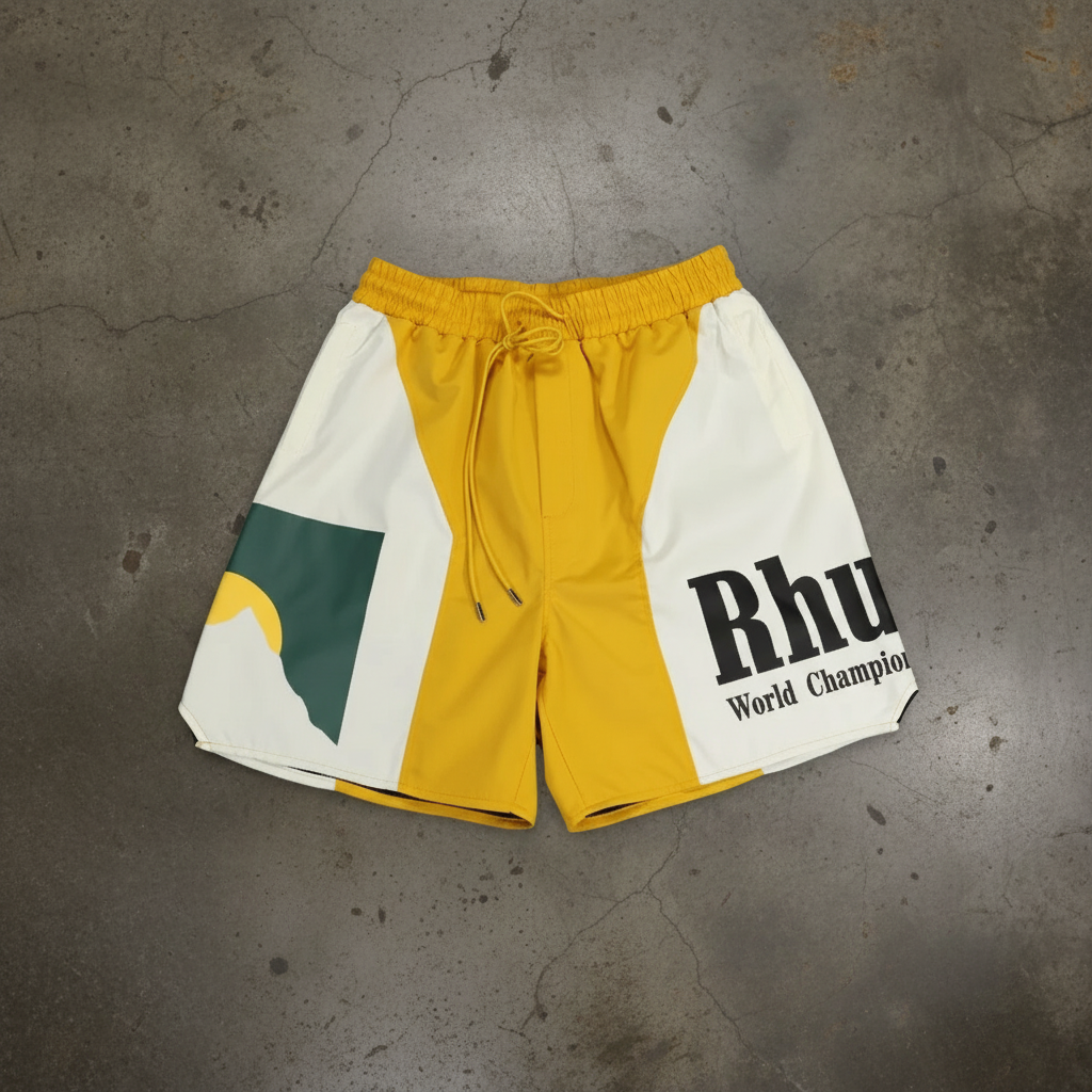 / Rhude Yellow & White Quick-Dry Shorts | Unisex Streetwear