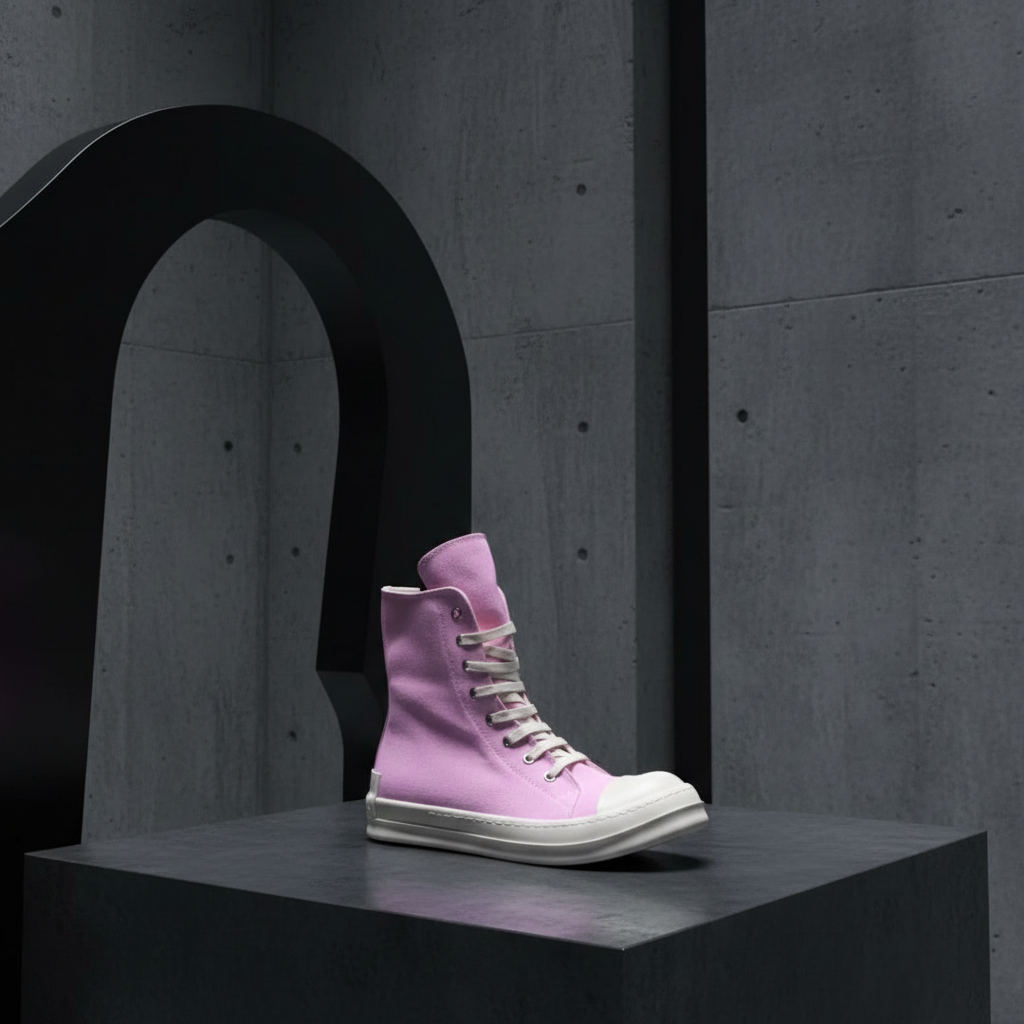 Rick Owens Pink Canvas High Top Sneakers